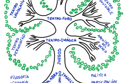 Diseñó un árbol del Teatro del Oprimido, en cuyas raíces se encontraba la ética, la solidaridad como principio motor. Con una base del tronco que se nutría de la palabra, del sonido y la imagen para desarrollar a través de juegos. De ahí surgían unas ramas con las técnicas específicas, que las denominó teatro-foro, acciones directas, arco iris del deseo, teatro periódico y legislativo, siempre entroncados en el teatro imagen, que permitía crear un lenguaje más universal.